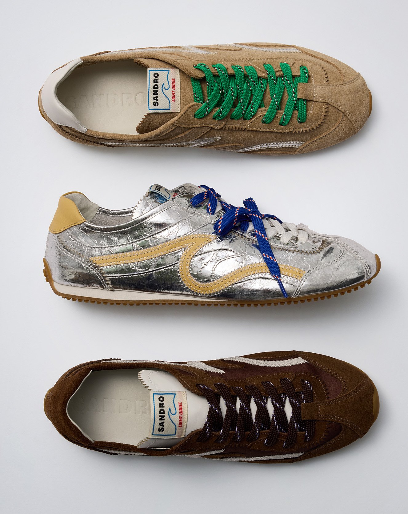 DISCOVER LIGHT WAVE. INSPIRED BY SS26 COLLECTION, IT REVISITS VINTAGE SNEAKERS IN LIGHT, CONTEMPORARY DESIGN. RETRO SILHOUETTE FEATURING DYNAMIC LINES, AVAILABLE IN SEASONAL COLOURS, IN LEATHER AND SUEDE.